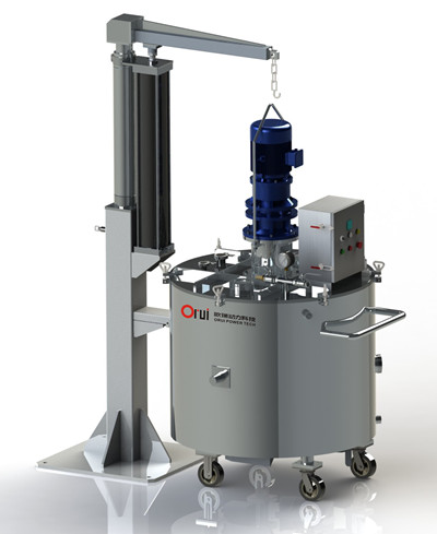 周轉(zhuǎn)桶由攪拌葉、傳動及動力系統(tǒng)、移動壓力容器(全304不銹鋼)及自動控制系統(tǒng)組成。它的功能主要是將已經(jīng)制成的料漿在無中斷攪拌的情況下傳送到下一工序,以防止料漿在傳送的過程中出現(xiàn)料漿中的固體物沉淀的情況及漿料的不均勻性。