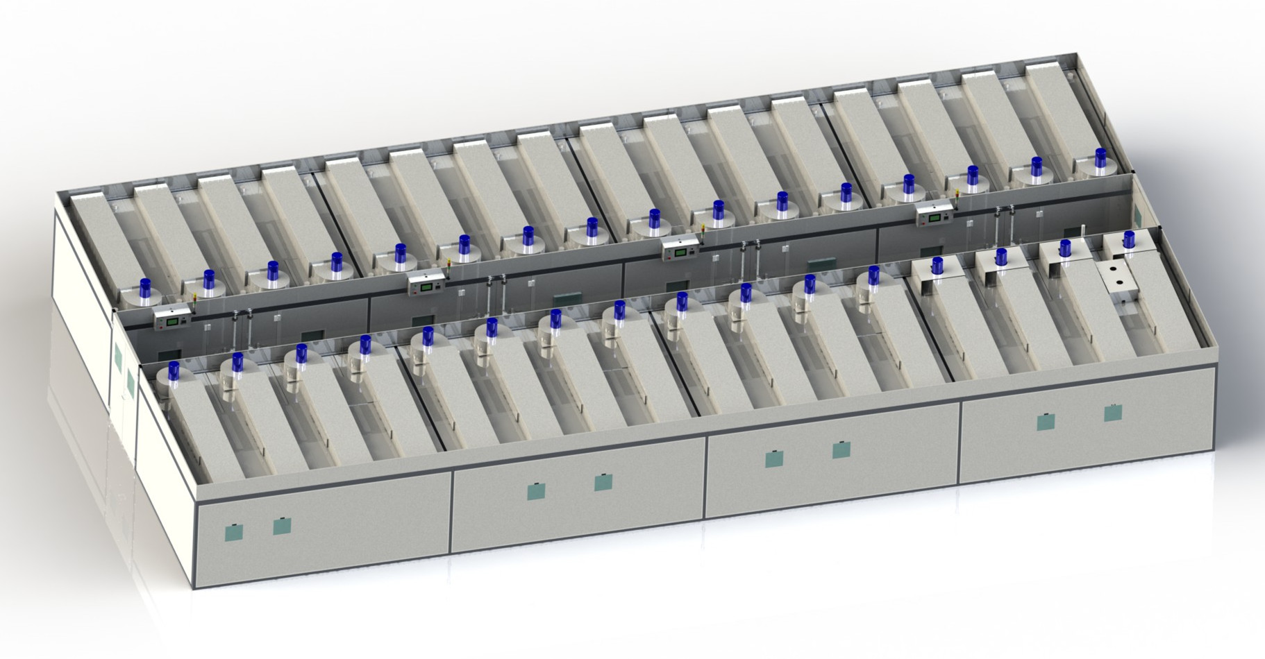 4)內(nèi)腔底部安裝有軌道及限位,供貨架車(chē)進(jìn)出。