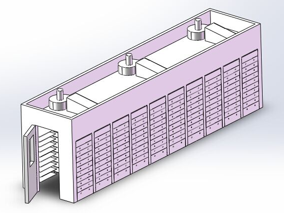 2)設(shè)備內(nèi)腔按客戶(hù)提供的電池產(chǎn)品尺寸設(shè)計(jì),有多個(gè)通道的定位夾具。
