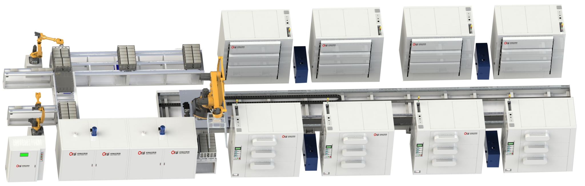 自動(dòng)烘烤系統(tǒng)用于鋰離子動(dòng)力電池電芯烘烤,以減少電池內(nèi)部極片、隔離模等材料的含水量,使烘烤后的電芯滿足鋰離子動(dòng)力電池生產(chǎn)工藝的需要。系統(tǒng)有三層自動(dòng)門烤箱、真空系統(tǒng)、機(jī)器人、機(jī)械手、機(jī)器人軌道、冷卻系統(tǒng)、調(diào)度系統(tǒng)、輸送線等部分組成,其主要功能是要通過(guò)操作調(diào)度系統(tǒng)來(lái)實(shí)現(xiàn)電芯的上料、干燥、下料、冷卻全程自動(dòng)化生產(chǎn)。整套設(shè)備具備工藝流程自動(dòng)控制、歷史數(shù)據(jù)查詢導(dǎo)出、關(guān)鍵參數(shù)實(shí)時(shí)顯示、問(wèn)題報(bào)警及原因追溯、安全保護(hù)等功能。